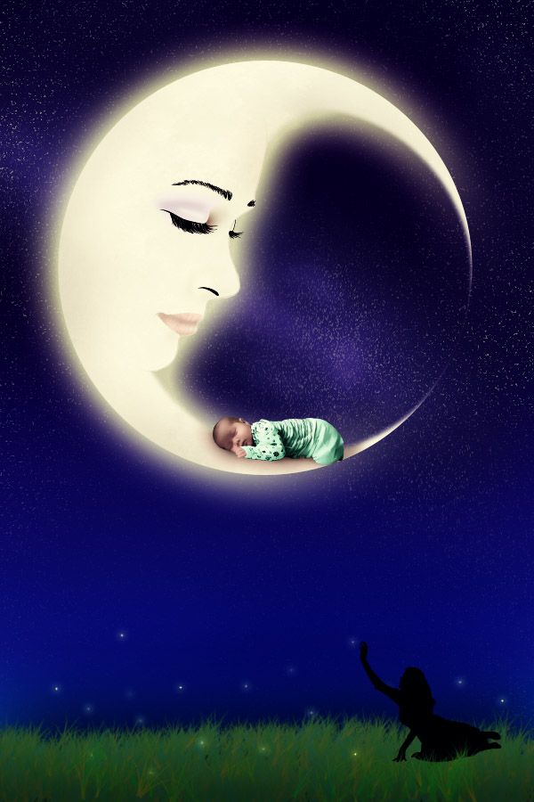 Da allora, quando il bambino dorme sereno, la Luna diviene piena; se invece il bimbo piange, essa cala per fargli da culla.