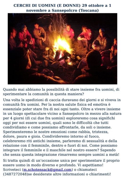 Quattro giornate organizzate dal “Convivio di Mira” in compagnia di due trainer d’eccezione quali Michael Schotensack e Raffaella Lisi con i quali sperimenteremo le nostre emozioni in un contesto comunitario in mezzo alla natura.